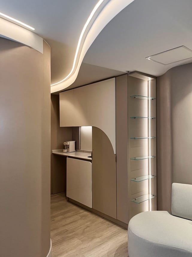 Nuestro objetivo: crear espacios sofisticados, con un diseño minimalista que reflejara elegancia atemporal. Un ambiente pensado para recibir, atender y conectar, donde cada detalle suma a la experiencia.