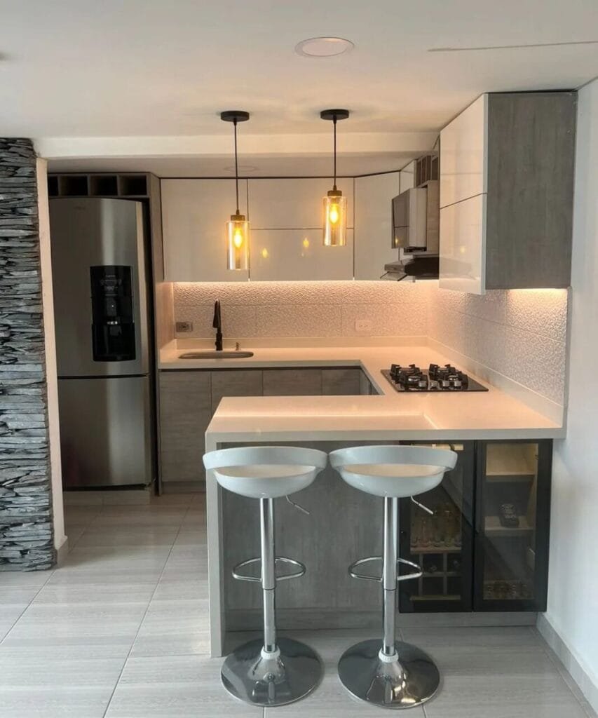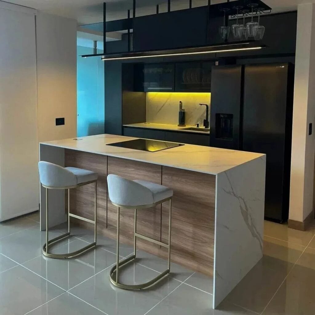 cocina conteporanea en marmol diseño de gabinetes multiproposito.